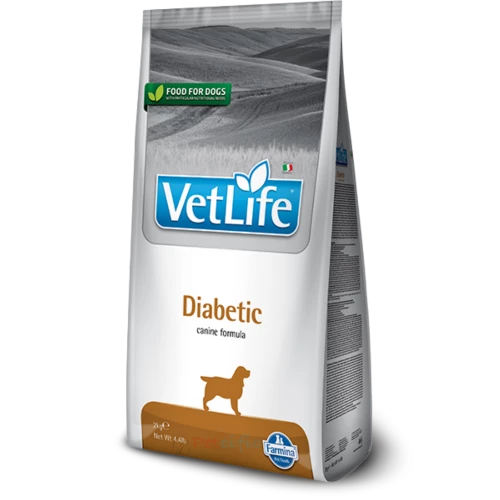Farmina Vet Life Diabetic is a complete dietetic food for adult dogs, suggested for the regulation of glucose supply (Diabetes mellitus) and the reduction of excessive body weight.