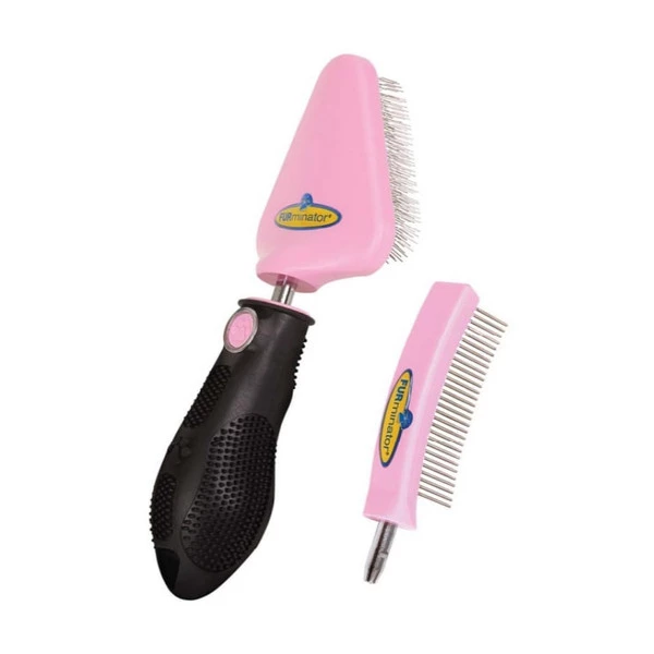 - 3-piece interchangeable slicker brush and comb set.