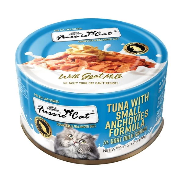 FUSSIE Cat Premium tuna in goat milk gravy canned for cats with high beans is rich in vitamins and minerals to provide comprehensive nutrition, and can supplement calcium to strengthen muscles and bones.