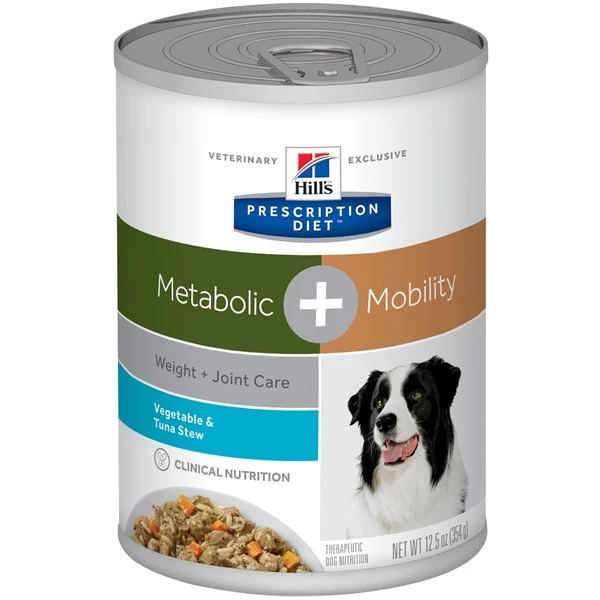 Hill's nutritionists & veterinarians developed Prescription Diet® Metabolic + Mobility Canine clinical nutrition especially formulated to help manage your dog's weight and joint health. In fact, Metabolic + Mobility Canine has clinically proven nutrition to improve mobility in as little as 21 days AND reduce body weight by 13% in 60 days.