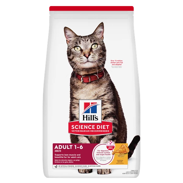 Hill's Science Diet Adult dry cat food is specially formulated to fuel the energy needs of cats during the prime of their life. Made with high quality, easy-to-digest ingredients.