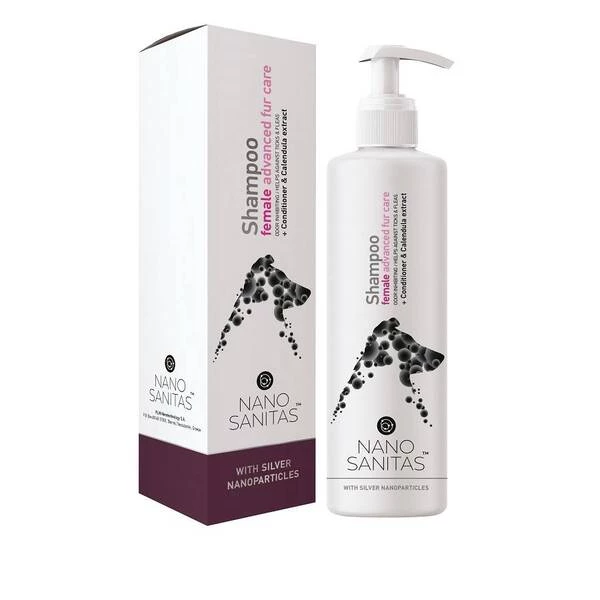 Nanosanitas ph balanced shampoo suitable for female canines and felines, ideal for breeds with long fur. Engineered to a new level of skin and coat-friendly, the company balances biophysical parameters of their products to gender. Featuring the same versions as the ones available for male breeds, Nanosanitas tunes the products to enhance the physical-, immunological- and microbial- barrier functions of your pet’s skin.