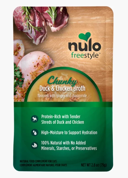 This product is intended for intermittent or supplemental feeding only. Feed in combination with a complete and balanced cat food. Gently swirl pouch to blend ingredients and pour into a bowl, or over your cat’s favorite Nulo kibble, canned, or freeze-dried recipe.