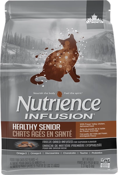 Nutrience Infusion Senior cat food is made with the finest Canadian ingredients. This kibble is specially formulated to meet the nutritional needs of adult senior cats and is made with a unique blend of fresh chicken and freeze-dried chicken to ensure superior flavor and nutrition that even the pickiest cats will crave.