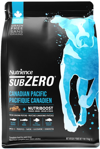 Nutrience SubZero Canadian Pacific dog food is made in Canada and prepared with fresh, Canadian-sourced wild-caught fish from the Pacific Coast including salmon, cod, sole, and rockfish. Only the highest quality proteins from trusted sources are selected for our formulas.
