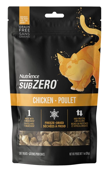 The closest thing to raw meat, our SubZero Freeze-Dried Chicken Cat Treats are freeze-dried at the peak of freshness, making them irresistible to even the pickiest eaters. Great as a treat, training reward or meal topper. Made with only one ingredient: 100% freeze-dried chicken.