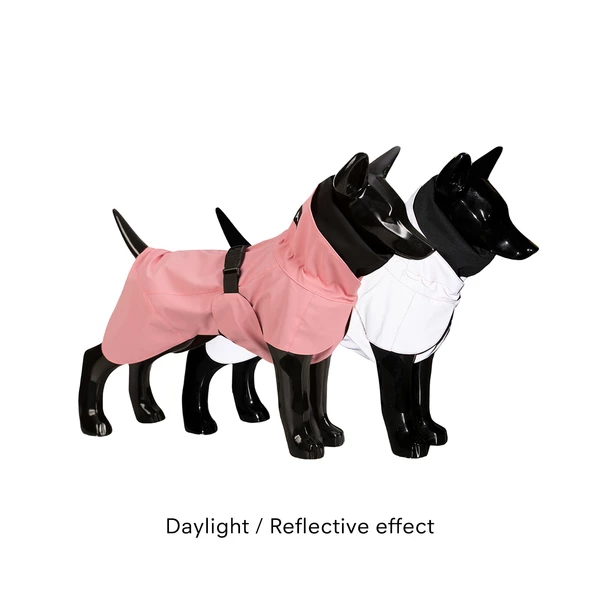 PAIKKA Visibility Raincoat with smart reflective surface ensures your dog is visible and stays safe when you head out for a walk. The jacket is made of 100% waterproof fabric and its seams are taped making sure your dog stays dry and comfortable. Raincoat is easy to rinse clean after a walk and thanks to convenient mesh lining, it dries quickly – you will be ready for your next adventure in no time!