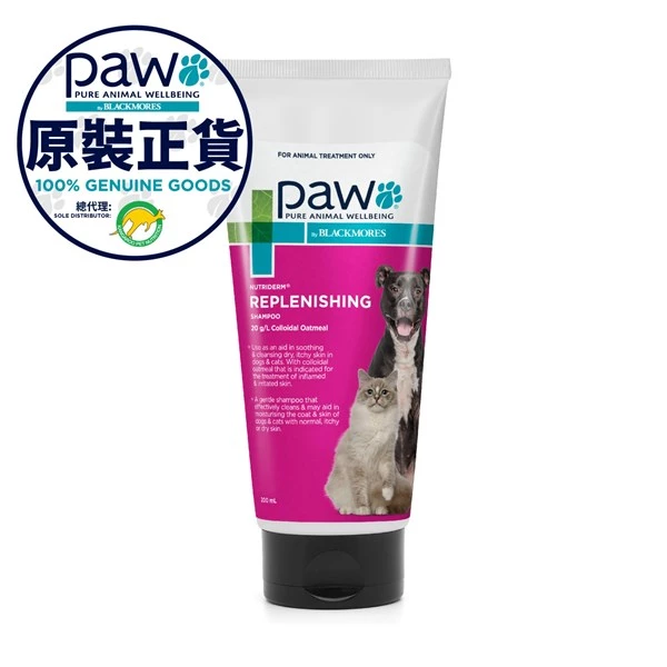 PAW NutriDerm Replenishing Shampoo is an innovative, advanced way to wash and care for your pet’s skin. A sulphate free, moisture rich, oatmeal pet shampoo it is suitable for dogs and cats with normal, dry and itchy skin.
