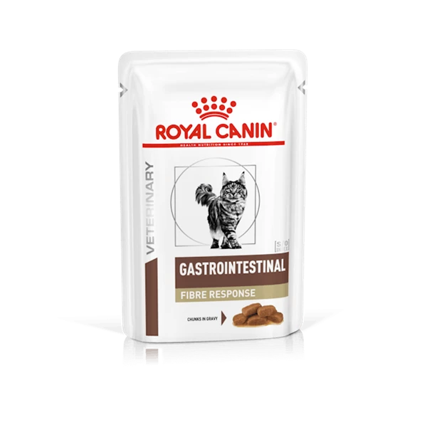 ROYAL CANIN® Gastrointestinal Fibre Response is specifically formulated to help meet the nutritional needs of cats with chronic constipation or similar gastrointestinal sensitivities. This diet is specifically formulated with high levels of psyllium to help manage feline constipation. This diet is formulated to provide adequate energy levels to help your cat to maintain a healthy body weight. This highly digestible formula is enriched with a balance of fibres and prebiotics to help support healthy digestion and transit. This diet is also formulated to promote a healthy urinary environment. As part of the ROYAL CANIN® Veterinary Health Nutrition range, it is important that this product is only given to your pet when recommended by a veterinary professional. Transitioning your pet from one diet to another should be a smooth and gradual process over a 7–10-day period. Please ensure you follow the correct rationing amount, especially when mixed feeding. To cater to each cat’s individual preferences, ROYAL CANIN® Gastrointestinal Fibre Response is also available as dry food with crunchy kibble.*