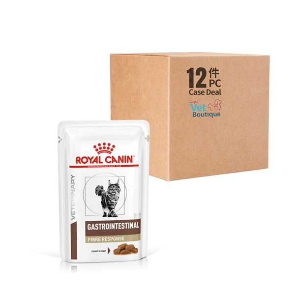 ROYAL CANIN® Gastrointestinal Fibre Response is specifically formulated to help meet the nutritional needs of cats with chronic constipation or similar gastrointestinal sensitivities. This diet is specifically formulated with high levels of psyllium to help manage feline constipation. This diet is formulated to provide adequate energy levels to help your cat to maintain a healthy body weight. This highly digestible formula is enriched with a balance of fibres and prebiotics to help support healthy digestion and transit.  This diet is also formulated to promote a healthy urinary environment. As part of the ROYAL CANIN® Veterinary Health Nutrition range, it is important that this product is only given to your pet when recommended by a veterinary professional. Transitioning your pet from one diet to another should be a smooth and gradual process over a 7–10-day period. Please ensure you follow the correct rationing amount, especially when mixed feeding. To cater to each cat’s individual preferences, ROYAL CANIN® Gastrointestinal Fibre Response is also available as dry food with crunchy kibble.*
