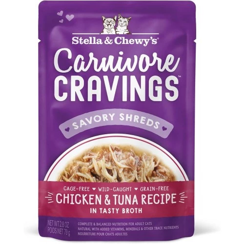 Cage-Free Chicken, Chicken Broth, Wild Caught Tuna, Sunflower Oil, Tapioca, Salt, Tricalcium Phosphate, Natural Chicken Flavor, Taurine, Dandelion, Magnesium Sulfate, Choline Chloride, Zinc Oxide, Reduced Iron, Sodium Selenite, Manganese Sulfate, Copper Amino Acid Complex, Potassium Iodide, Vitamin E Supplement, Thiamine Mononitrate, Niacin Supplement, Vitamin A Supplement, Pyridoxine Hydrochloride, D-calcium Pantothenate, Riboflavin Supplement, Folic Acid, Vitamin B12 Supplement, Vitamin D3 Supplement, Biotin, Potassium Chloride, Celery Powder