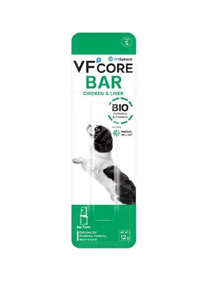 A complementary feed for dogs (over 2 months) in a bar treat form, with a comprehensive advanced nutritional complex of postbiotics, prebiotics, and multi-vitamins to support the immune system through the activation of gut immunity for pets.