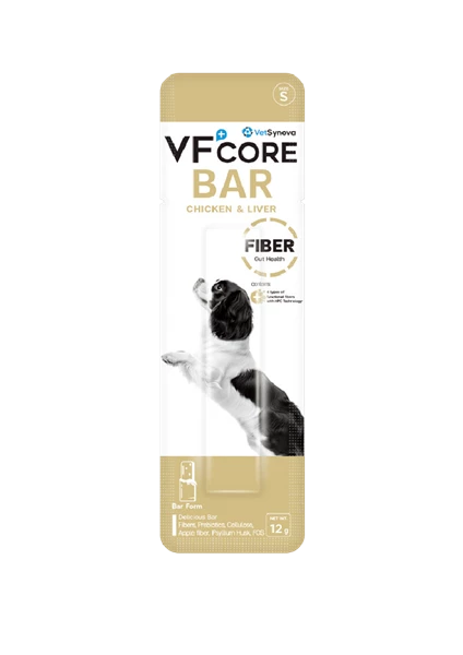 A complementary feed for dogs (over 2 months) in a bar treat form, containing a combination of four types of four types of functional fibers, with HPC technology to support gut health for pets.