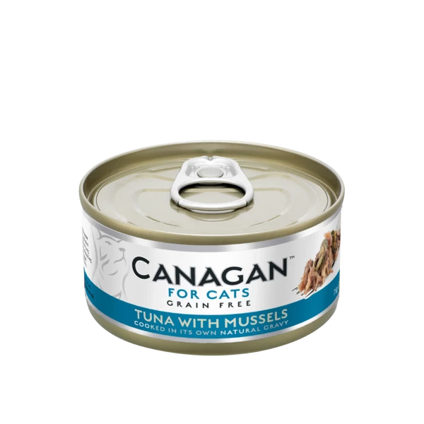 CANAGAN 原之選貓咪主食罐 - 吞拿魚伴青口配方精心選用吞拿魚和青口為原料,並特選英國當地蔬菜為毛孩打造完美營養比例。此貓濕糧按照生物學上合理的肉類和蔬菜分配比例,65%的動物營養成分及35%的蔬菜和草本植物。以海鮮為特色的主食罐,既可成為主糧,亦可成為乾糧配料。CANAGAN 原之選主食罐採用了無穀物配方,對穀物敏感或挑食的毛孩也能開心享用此寵物食品。