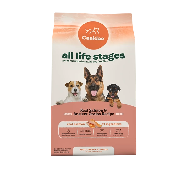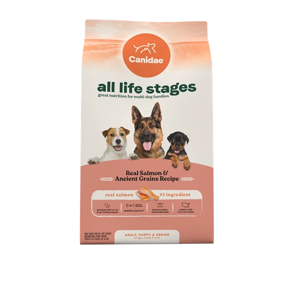 Canidae 全齡犬乾糧是由獸醫和寵物營養專家共同研發,適合所有年齡、品種和體型的狗狗,讓用餐時間變得輕鬆。這款食品提供完整且均衡的營養,特別適合多狗家庭。