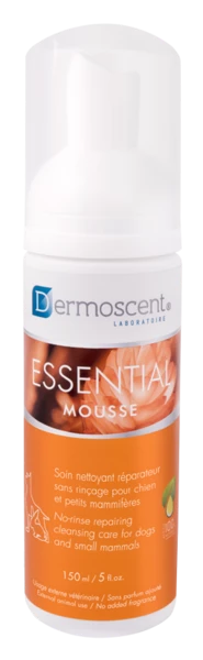 Dermoscent Essential Mousse®包含麻油,該麻油富含必需脂肪酸(Ω3和6),花生米精油,地衣提取物和南瓜籽衍生的舒緩劑。清潔基料的配方包含皂角木根提取物和來自青蘋果的脂氨基酸