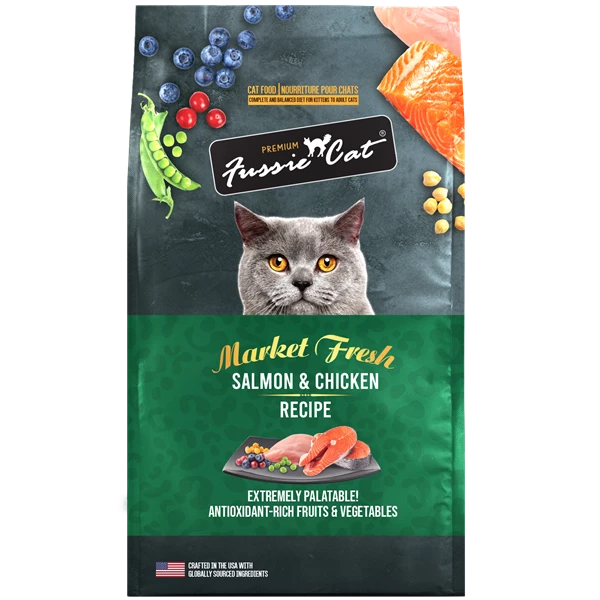 Fussie Cat高竇貓的所有食品皆以高品質的動物性蛋白質為主要成分,確保貓貓的健康。貓咪是出名的美食家,這並非為了考驗你的耐心,而是出於生理需求,貓屬於肉食動物,因此天生就需要攝取動物性蛋白質才能茁壯成長,這也正是Fussie Cat Market Fresh三文魚及雞肉配方選擇擁有完整蛋白質的肉類作為主要成分的原因。如果貓味不肯進食,即使食物再怎樣有營養也沒用,所以我們根據貓咪的實際食用反應來調配專屬口味,以確貓咪都會喜歡Fussie Cat的食品。Fussie Cat高竇貓宣稱產品是和貓咪一起研發,絕對不只是一句口號,而是製作高品質寵物食品的秘訣。