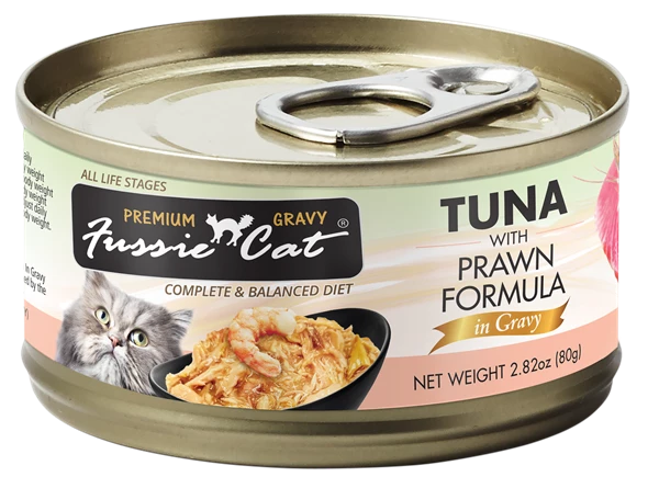 Fussie Cat高竇貓的所有食品皆以高品質的動物性蛋白質為主要成分,確保貓貓的健康。Fussie Cat高竇貓新推出的極品吞拿魚肉汁主食罐 - 極品吞拿魚 + 虎蝦肉汁,帶領眾貓咪進入美味新境界。此高竇貓肉汁主食罐系列適合任何成長階段貓咪,營養全面又均衡,滿足嘴刁貓咪的要求!Fussie Cat高竇貓宣稱產品是和貓咪一起研發,絕對不只是一句口號,而是製作極品高品質寵物食品的秘訣。