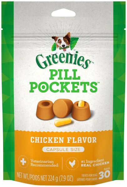 寵物在逃避吃藥方面很厲害,但你更聰明。由獸醫設計和推薦的 GREENIES™ 餵藥輔助狗小食讓您可以輕鬆地給您的狗吃藥。不要在人類食物中藏入藥物,例如花生醬或奶酪。請改為提供健康、低熱量的餵藥輔助狗小食。 GREENIES™ 餵藥輔助狗小食可以消除給您的狗服用膠囊或液體藥物所產生的壓力和混亂。我們易於食用的小食可掩蓋藥物的氣味和味道,並提供您的狗會喜歡的美味雞肉味。