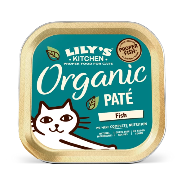 LILY'S KITCHEN 有機無穀物貓用主食罐 - 有機鮮魚常餐採用有機魚肉、豬肉、雞肉、牛肉製成。此有機無穀物貓罐頭不但以有機食材製作,富含營養,更有充足的礦物質,提供貓貓所需的全部營養,加上肉醬質地柔軟、滑順使貓咪更容易舔舐。LILY'S KITCHEN以天然和健康為配方,是高品質的有機貓貓寵物食品。