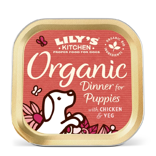 LILY'S KITCHEN 有機犬用主食罐 - 有機幼犬雞肉特餐採用新鮮及有機的雞肉、豬肉、牛肉和魚,並混合胡蘿蔔和豌豆製成。而且,此狗罐頭含有有益的草本植物,添加了狗隻必需的維生素和礦物質。這濕糧以天然和健康為配方,是狗狗能安心食用的寵物食品。