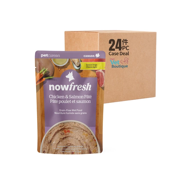 Now Fresh無穀物雞肉與三文魚醬老年犬濕糧,符合AAFCO狗糧營養標準的維護要求。