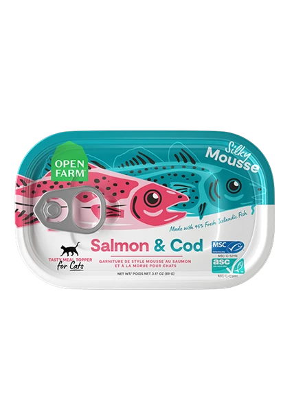 滋味糧伴三文魚慕斯以95%新鮮冰島三文魚和鱈魚製成,是為貓咪餐點即時增添口感與多樣性的美味營養選擇。不含穀物與豆類,並於人類食品級工廠製作,所用食材全為100%人類食品級
