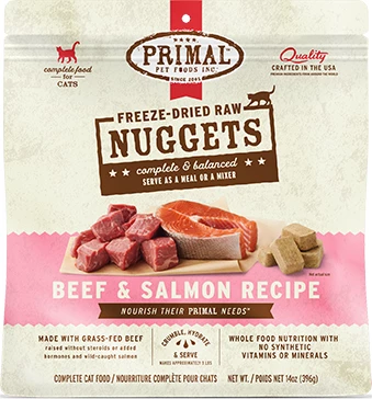 使用Primal凍乾生肉塊,輕鬆餵養您的貓咪真正的全食物,提供最佳營養和可消化性。我們的牛肉和三文魚配方凍乾生肉貓糧不含合成維生素和礦物質。它由無類固醇或添加激素飼養的草飼牛肉和野生捕獲的三文魚製成。只需分配、撕碎,然後用溫水、骨湯或生山羊奶水合。