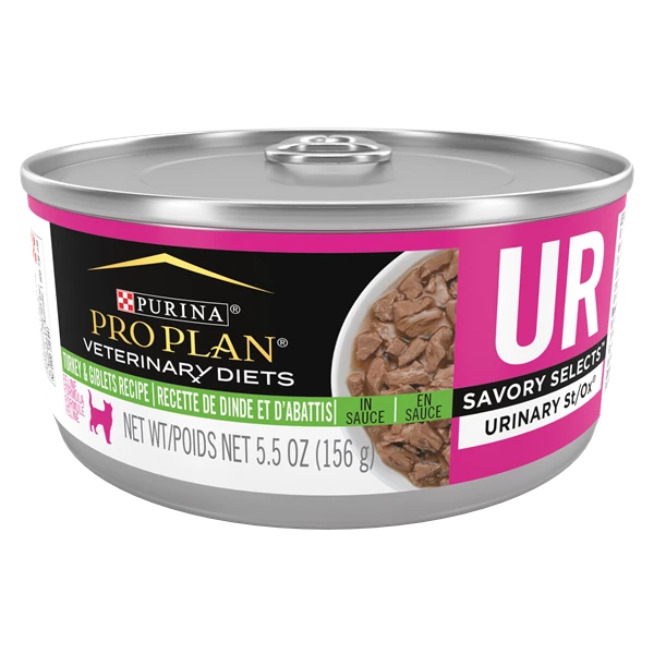 PURINA PROPLAN UR 泌尿健康護理貓罐頭採用優質成分製成,特別針對貓尿結石問題而設計,有助於降低尿路結石形成的風險。此治療性飲食配方由 PURINA 的營養學家,科研人員和獸醫共同研發,確保貓咪的泌尿道系統得到全面保護。