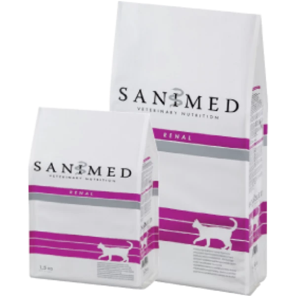 慢性腎功能衰竭通常與代謝過程中形成的酸分泌減少有關。為了防止代謝性酸中毒的可能性,SANIMED 貓用治療腎臟配方濕糧促使中性尿液 pH 值。同時,因為飼料中低含量的磷、鎂和蛋白質,鳥糞石尿石症的風險不會增加。為了降低草酸鈣尿石症的風險,SANIMED 貓用治療腎臟配方濕糧會減低鈣和甘氨酸的含量,減少貓咪體內形成草酸合成物。合適的腎臟飲食只能抑制腎功能的削弱的速度,延長貓咪患有腎病後的生命。