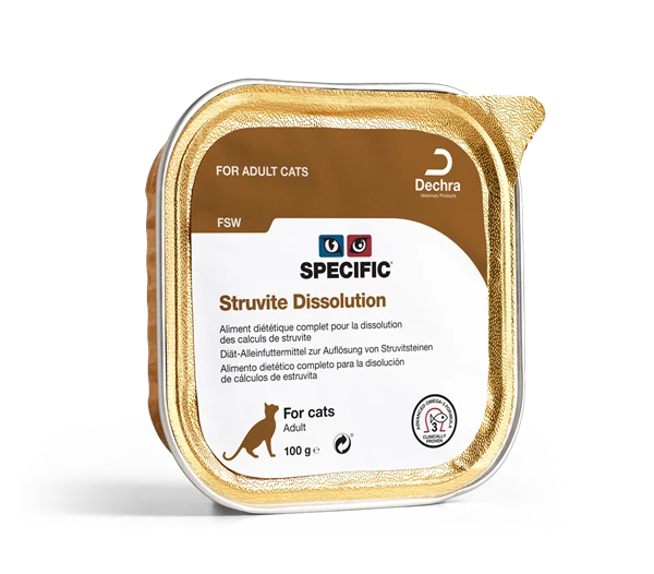 SPECIFIC™ FSW 溶解草酸鈣結石配方是一款濕食,旨在溶解貓咪的草酸鈣結石。一旦結石溶解,SPECIFIC™ 還有其他配方可供長期使用,以幫助防止結石再形成。此飲食僅應餵食 5 至 12 週。