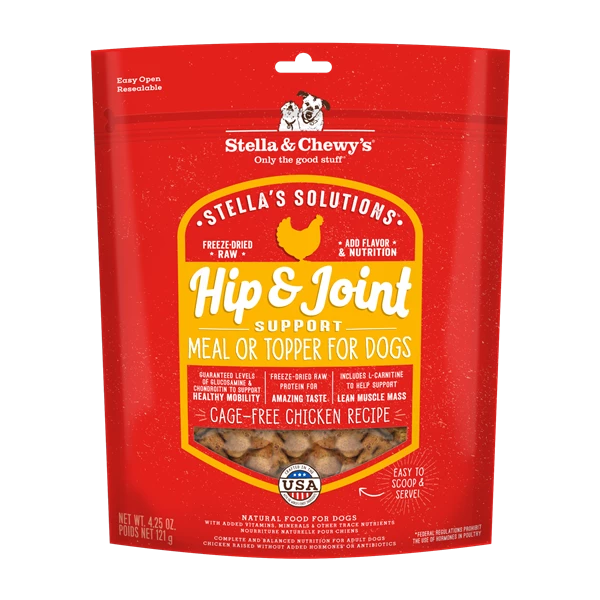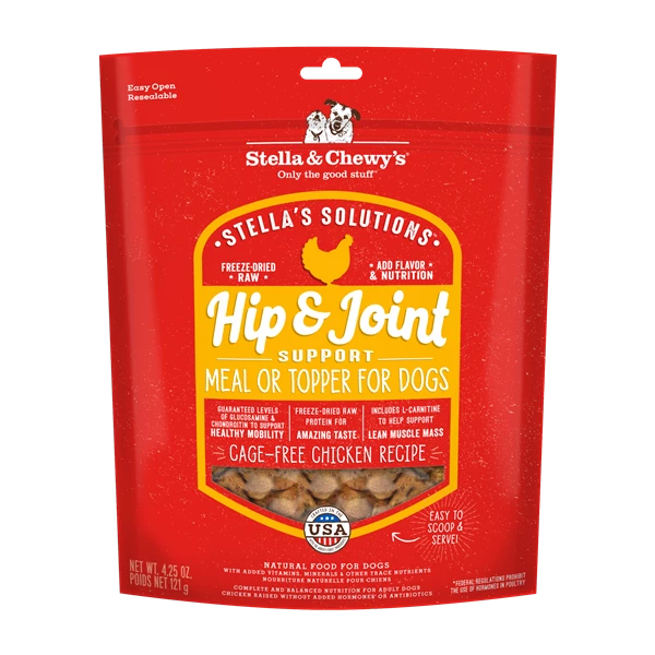 STELLA & CHEWY'S凍乾生肉功能配方狗糧 - 有助關節健康 (放養雞配方) 提供完整的營養,幫助成犬和老年犬維持關節健康。此寵物食品提供了一種便利的方式,讓狗主人更輕鬆地給毛孩提供生食飲食所需的營養和能量。這款狗狗凍乾糧加入多種天然成分和維生素,不含豌豆、扁豆和土豆,只選用世界上最好和最安全的原料在美國製作,是高品質又健康的狗隻寵物食品。