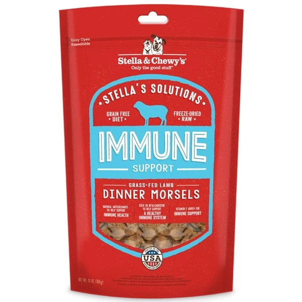 STELLA & CHEWY'S凍乾生肉功能配方狗糧 - 支援免疫系統 (草飼羊配方) 提供豐富的營養,幫助成犬和老年犬免疫系統健康。此寵物食品提供了一種便利的方式,讓狗主人更輕鬆地給毛孩提供生食飲食所需的營養和能量。這款狗狗凍乾糧含有天然成分和維生素,無豌豆、扁豆和土豆,只選用世界上最好和最安全的原料在美國製作,是高品質又有保障的狗隻寵物食品。